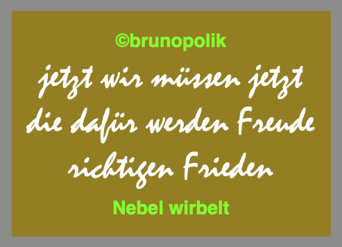 Nebel wirbelt 20. Oktober 2025 493 × 356 Nebel wirbelt Screenshot einer Haiku-Strophe aus dem Poetry-Text der PolitikerInnen-Worte mit dem Titel „Nebel wirbelt“, gebaut aus der Rede vom 17.09.2025 der Bundestagsabgeordneten Ophelia Nick DIE GRÜNEN. Teilen mit: Klicken zum Ausdrucken (Wird in neuem Fenster geöffnet) Drucken Klick, um auf Facebook zu teilen (Wird in neuem Fenster geöffnet) Facebook Klicke, um auf X zu teilen (Wird in neuem Fenster geöffnet) X Gefällt mir:Gefällt mir Wird geladen …