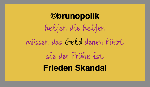 Frieden Skandal 28. Oktober 2025 491 × 284 Frieden Skandal Screenshot einer Haiku-Strophe aus dem Poetry-Text der PolitikerInnen-Worte mit dem Titel „Frieden Skandal“, gebaut aus der Rede vom 17.09.2025 der Bundestagsabgeordneten Charlotte Antonia Neuhäuser DIE LINKE. Teilen mit: Klicken zum Ausdrucken (Wird in neuem Fenster geöffnet) Drucken Klick, um auf Facebook zu teilen (Wird in neuem Fenster geöffnet) Facebook Klicke, um auf X zu teilen (Wird in neuem Fenster geöffnet) X Gefällt mir:Gefällt mir Wird geladen …