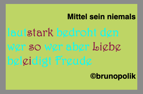 Mittel sein niemals 13. November 2025 501 × 332 Mittel sein niemals Screenshot einer Haiku-Strophe aus dem Poetry-Text der PolitikerInnen-Worte mit dem Titel „Mittel sein niemals“, gebaut aus der Rede vom 16.10.2025 der Bundestagsabgeordneten Rasha Nasr SPD. Teilen mit: Klicken zum Ausdrucken (Wird in neuem Fenster geöffnet) Drucken Klick, um auf Facebook zu teilen (Wird in neuem Fenster geöffnet) Facebook Klicke, um auf X zu teilen (Wird in neuem Fenster geöffnet) X Gefällt mir:Gefällt mir Wird geladen …