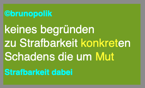 Strafbarkeit dabei 3. Februar 2026 485 × 297 Strafbarkeit dabei Screenshot einer Haiku-Strophe aus dem Poetry-Text der PolitikerInnen-Worte mit dem Titel „Strafbarkeit dabei“, gebaut aus der Rede vom 29.01.2026 des Bundestagsabgeordneten Axel Müller CDU.. Teilen mit: Klicken zum Ausdrucken (Wird in neuem Fenster geöffnet) Drucken Klick, um auf Facebook zu teilen (Wird in neuem Fenster geöffnet) Facebook Klicke, um auf X zu teilen (Wird in neuem Fenster geöffnet) X Gefällt mir:Gefällt mir Wird geladen …