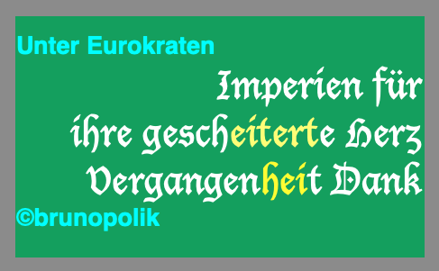 Unter Eurokraten 19. Februar 2026 487 × 301 Unter Eurokraten Screenshot einer Haiku-Strophe aus dem Poetry-Text der PolitikerInnen-Worte mit dem Titel „Unter Eurokraten“, gebaut aus der Rede vom 23.05.2025 der Bundestagsabgeordneten Matthias Moosdorf AfD.. Teilen mit: Drucken (Wird in neuem Fenster geöffnet) Drucken Auf Facebook teilen (Wird in neuem Fenster geöffnet) Facebook Auf X teilen (Wird in neuem Fenster geöffnet) X Gefällt mir:Gefällt mir Wird geladen …