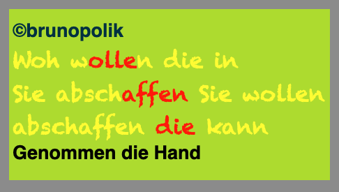 Genommen die Hand 4. April 2026 486 × 275 Genommen die Hand Screenshot 1/5 Gefällt mir:Gefällt mir Wird geladen … Screenshot einer Haiku-Strophe aus dem Poetry-Text der PolitikerInnen-Worte mit dem Titel „Genommen die Hand“, gebaut aus der Rede vom 19.03.2026 des Bundestagsabgeordneten Michael Kießling CSU.. Teilen mit: Drucken (Wird in neuem Fenster geöffnet) Drucken Auf Facebook teilen (Wird in neuem Fenster geöffnet) Facebook Auf X teilen (Wird in neuem Fenster geöffnet) X Gefällt mir:Gefällt mir Wird geladen …