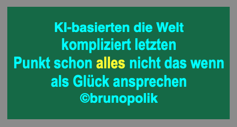 KI-basierten die Welt 8. April 2026 487 × 262 KI-basierten die Welt Screenshot 3/2 Gefällt mir:Gefällt mir Wird geladen … Screenshot einer Haiku-Strophe aus dem Poetry-Text der PolitikerInnen-Worte mit dem Titel „KI-basierten die Welt“, gebaut aus der Rede vom 16.01.2026 des Bundestagsabgeordneten Boris Mijatović DIE GRÜNEN.. Teilen mit: Drucken (Wird in neuem Fenster geöffnet) Drucken Auf Facebook teilen (Wird in neuem Fenster geöffnet) Facebook Auf X teilen (Wird in neuem Fenster geöffnet) X Gefällt mir:Gefällt mir Wird geladen …