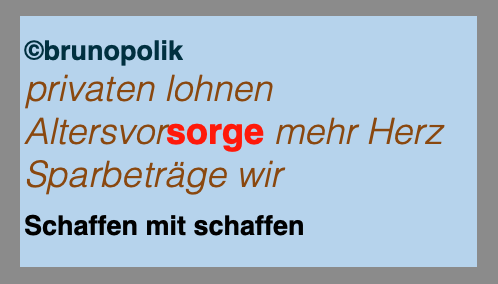 Schaffen mit schaffen 27. April 2026 498 × 284 Schaffen mit schaffen Screenshot 2/1 Gefällt mir:Gefällt mir Wird geladen … Screenshot einer Haiku-Strophe aus dem Poetry-Text der PolitikerInnen-Worte mit dem Titel „Schaffen mit schaffen“, gebaut aus der Rede vom 26.02.2026 des Bundestagsabgeordneten Lars Klingbeil SPD. Teilen mit: Drucken (Wird in neuem Fenster geöffnet) Drucken Auf Facebook teilen (Wird in neuem Fenster geöffnet) Facebook Auf X teilen (Wird in neuem Fenster geöffnet) X Gefällt mir:Gefällt mir Wird geladen …